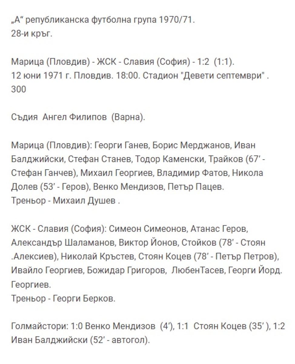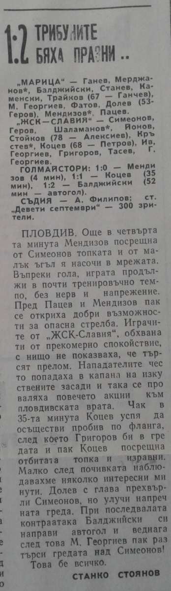 «Марица» Пловдив - «Славия» София - 1:2
