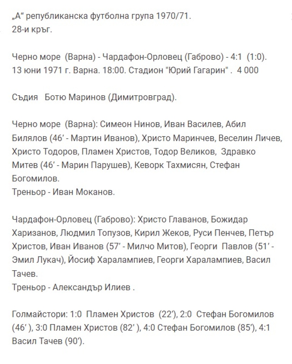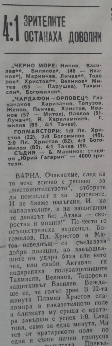 «Черно море» Варна - «Чардафон-Орловец» Габрово - 4:1