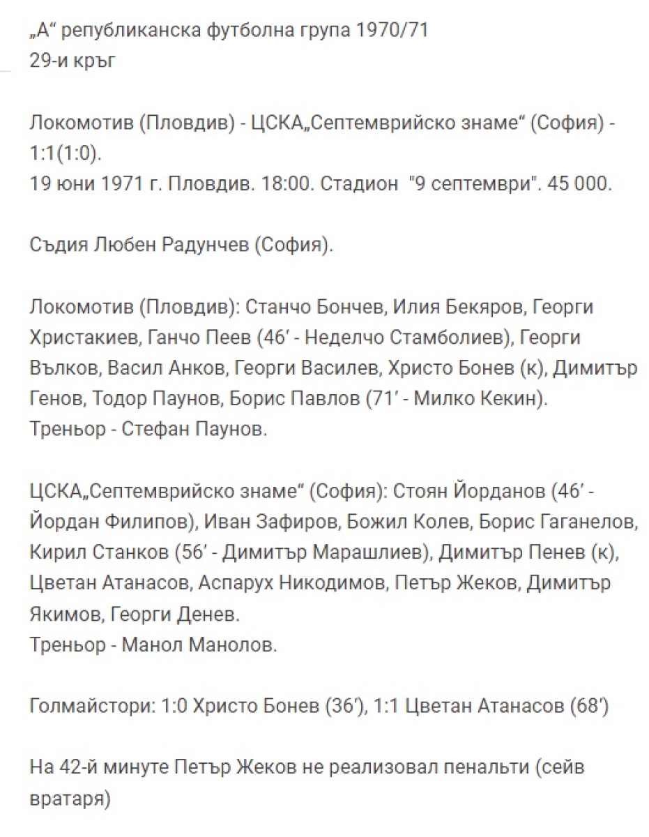 «Локомотив» Пловдив - «ЦСКА Септемврийско Знаме» София - 1:1