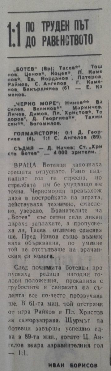 «Ботев» Враца - «Черно море» Варна - 1:1