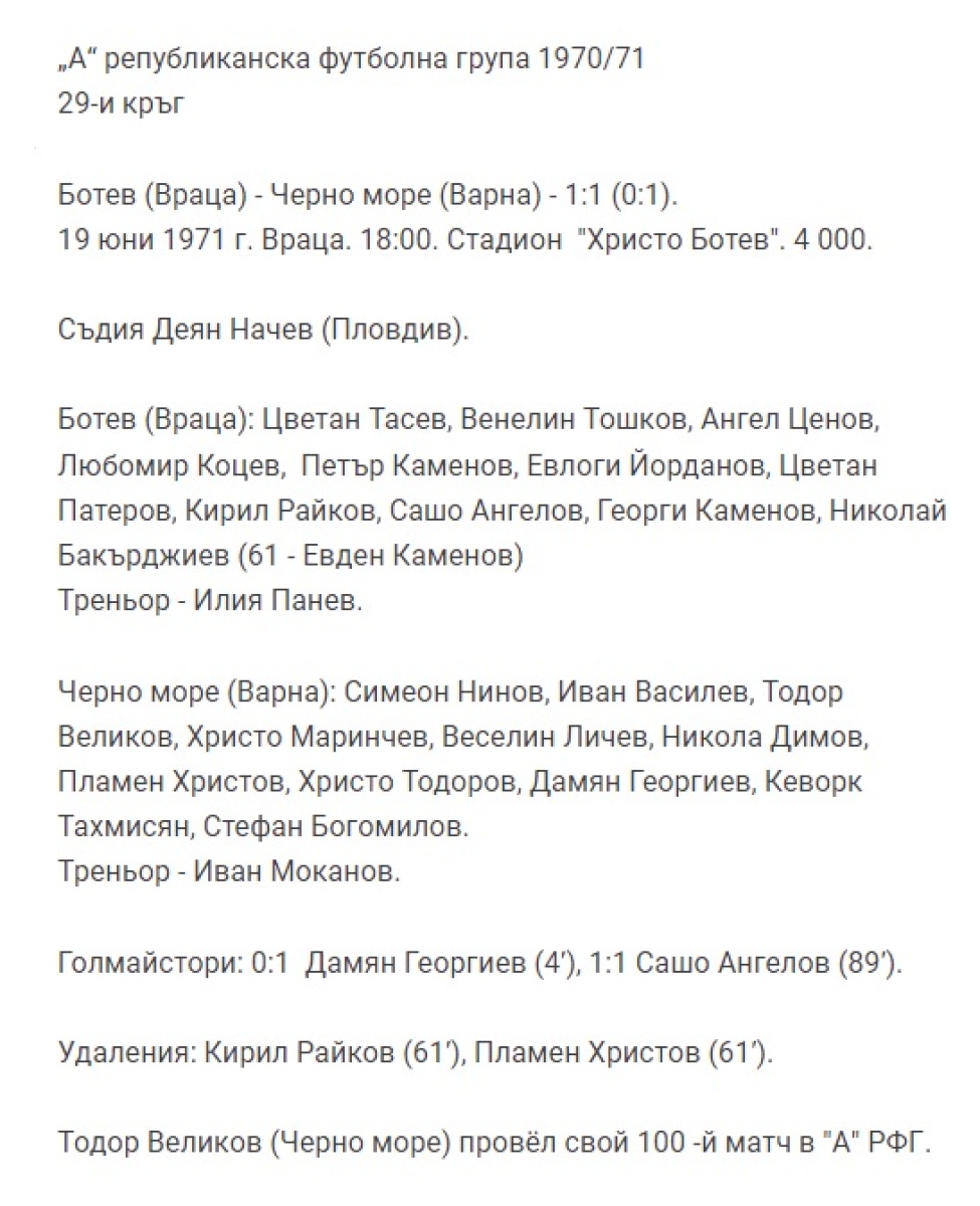 Тодор Великов (Черно море) сыграл свой 100-й матч в А РФГ.