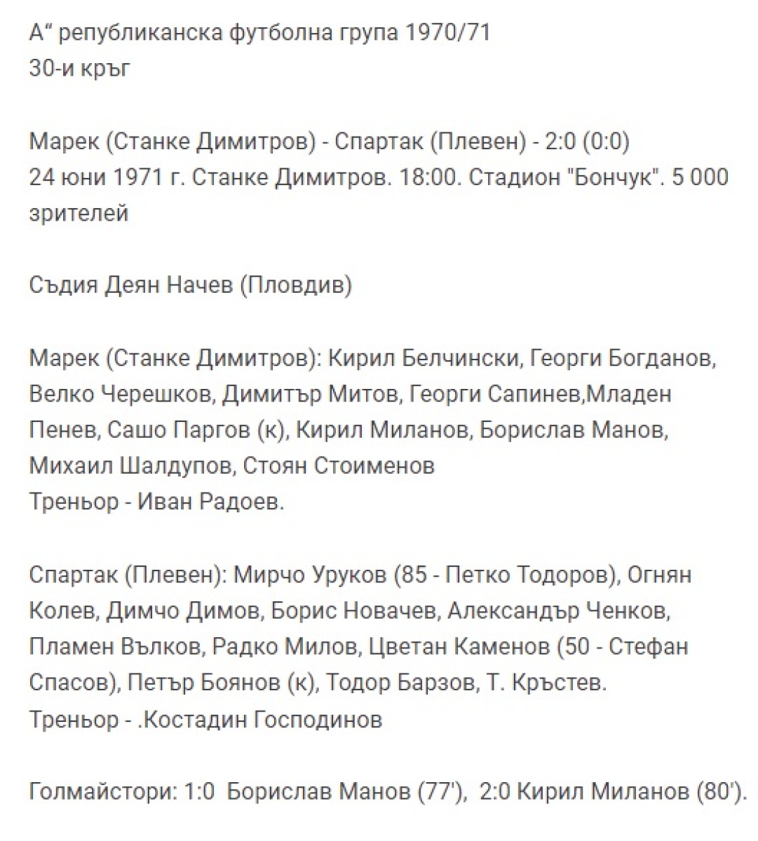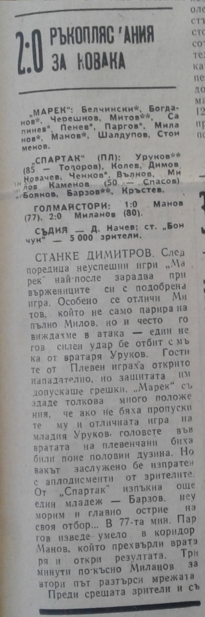 «Марек» Станке-Димитров - «Спартак» Плевен - 2:0