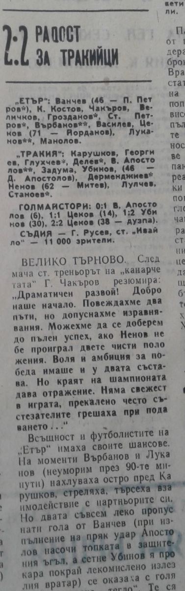 «Этыр» Велико-Тырново - «Тракия» Пловдив - 2:2