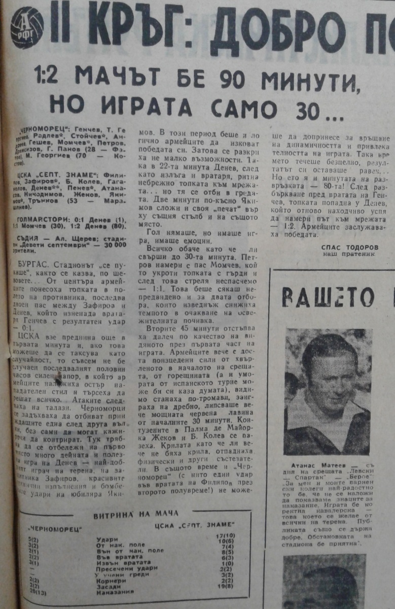 «Черноморец» Бургас - «ЦСКА Септемврийско Знаме» София - 1:2