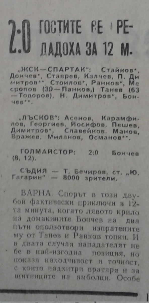 «ЖСК-Спартак» Варна - «Николай Лысков» Ямбол - 2:0