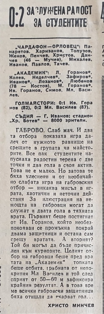 «Чардафон-Орловец» Габрово - «Академик» София - 0:2