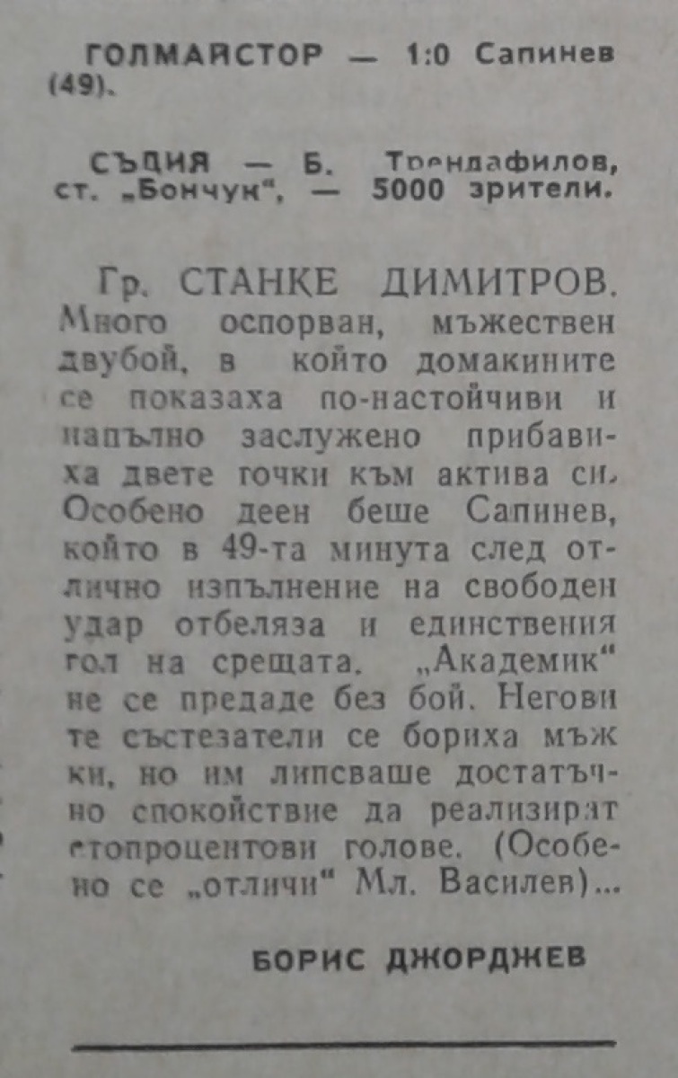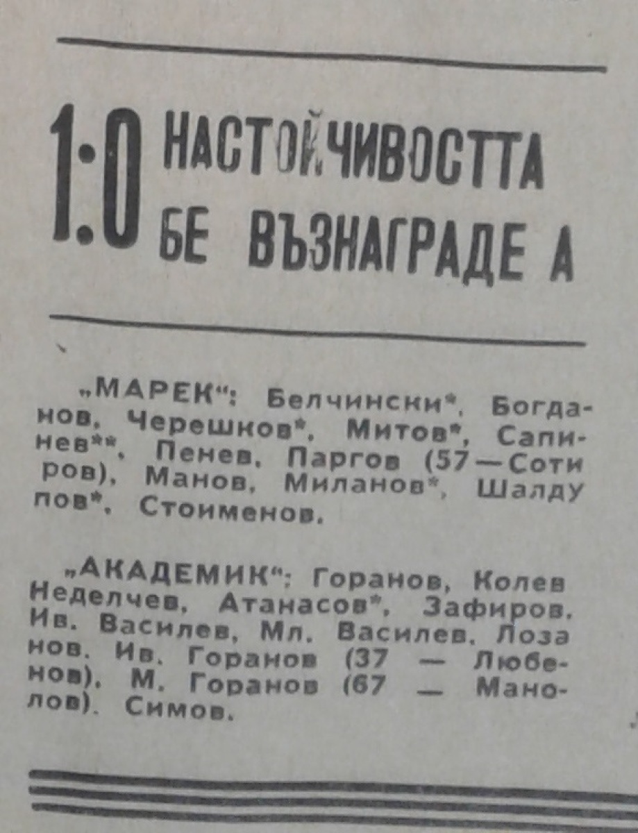 «Марек» Станке-Димитров - «Академик» София - 1:0
