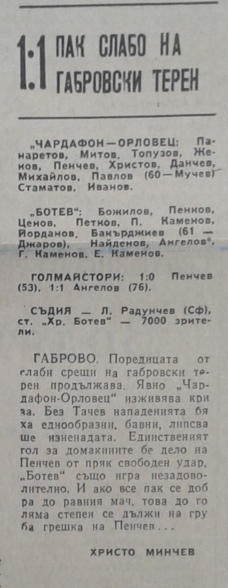 «Чардафон-Орловец» Габрово - «Ботев» Враца - 1:1