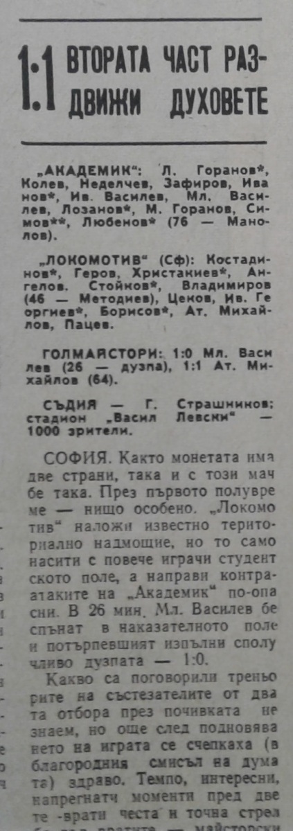 «Академик» София - «Локомотив» София - 1:1