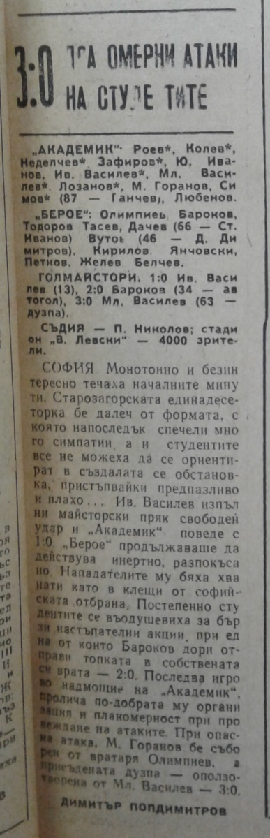 Георги Роев (Академик София) дебютировал в А РФГ (из юнош.команды ЦСКА).