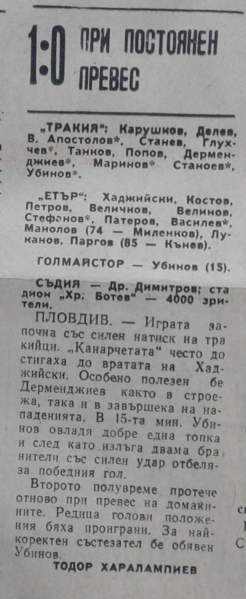 «Тракия» Пловдив - «Этыр» Велико-Тырново - 1:0