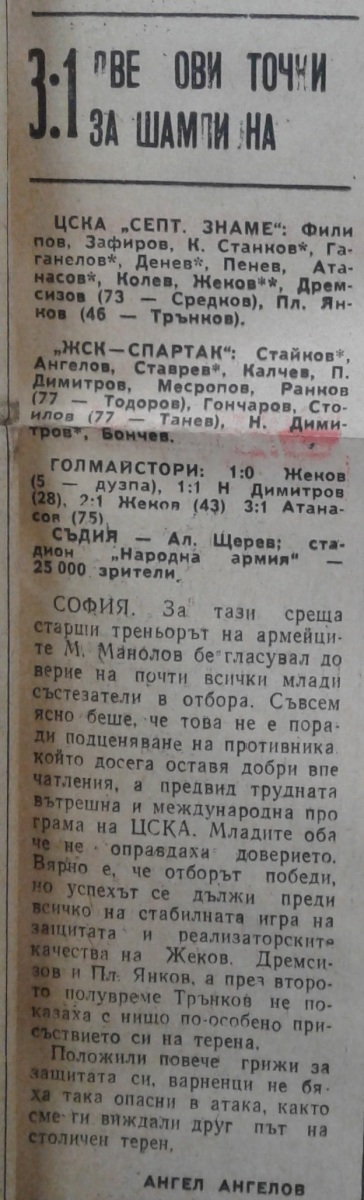 «ЦСКА Септемврийско Знаме» София - «ЖСК-Спартак» Варна - 3:1