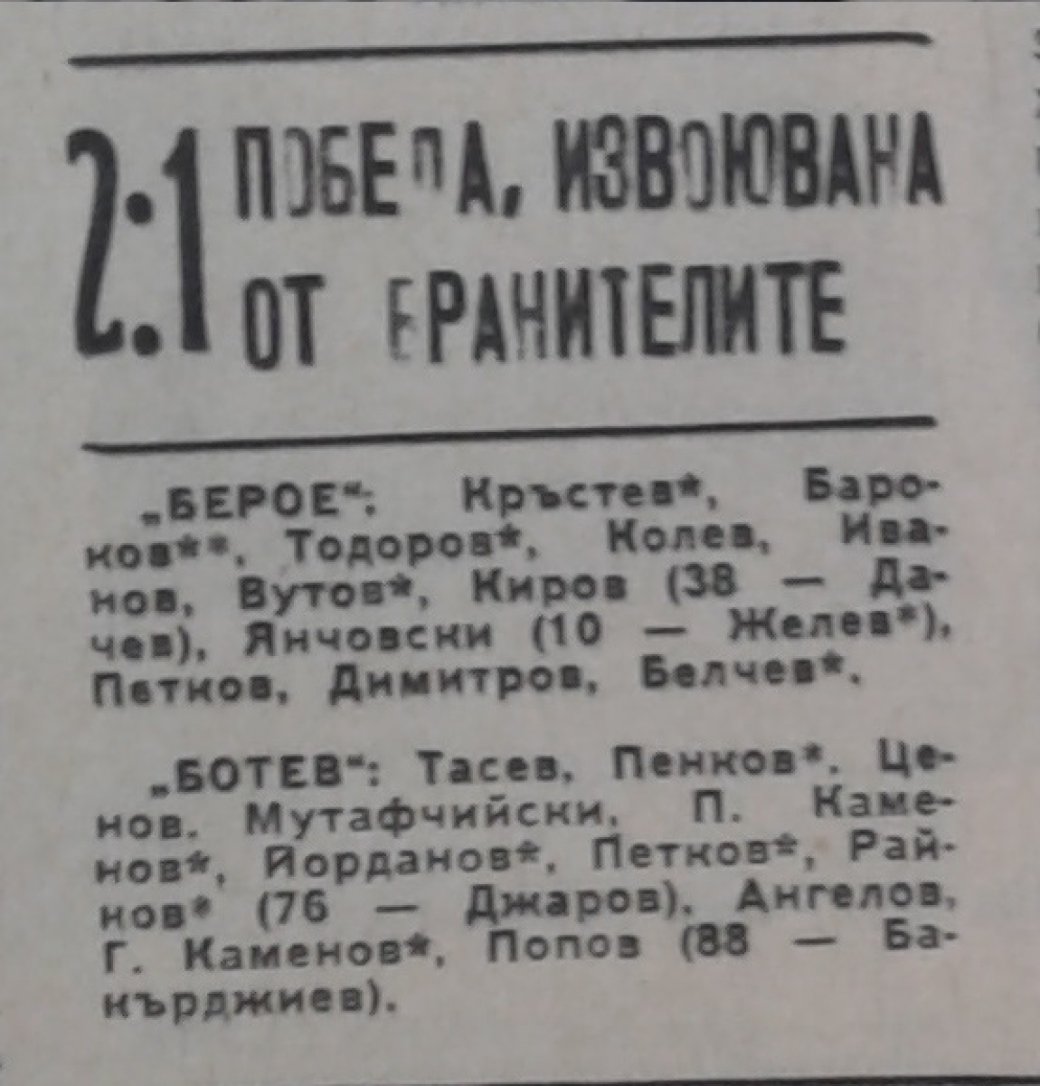 «Берое» Стара-Загора - «Ботев» Враца - 2:1