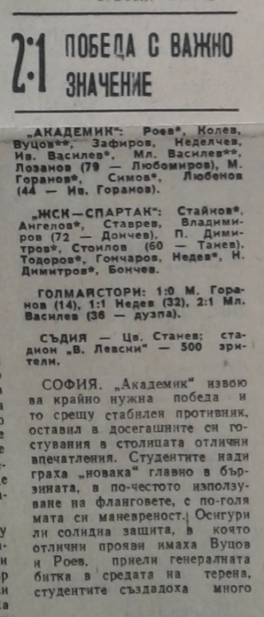 «Академик» София - «ЖСК-Спартак» Варна - 2:1