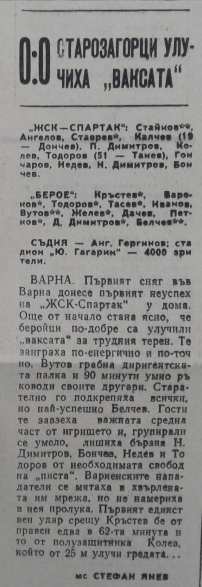 «ЖСК-Спартак» Варна - «Берое» Стара-Загора - 0:0