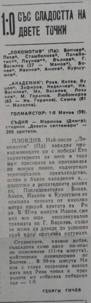 «Локомотив» Пловдив - «Академик» София - 1:0