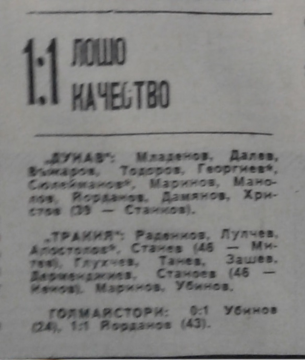 «Дунав» Русе - «Тракия» Пловдив - 1:1