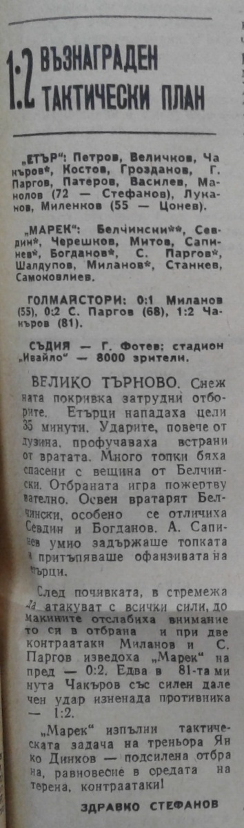 «Этыр» Велико-Тырново - «Марек» Станке-Димитров - 1:2