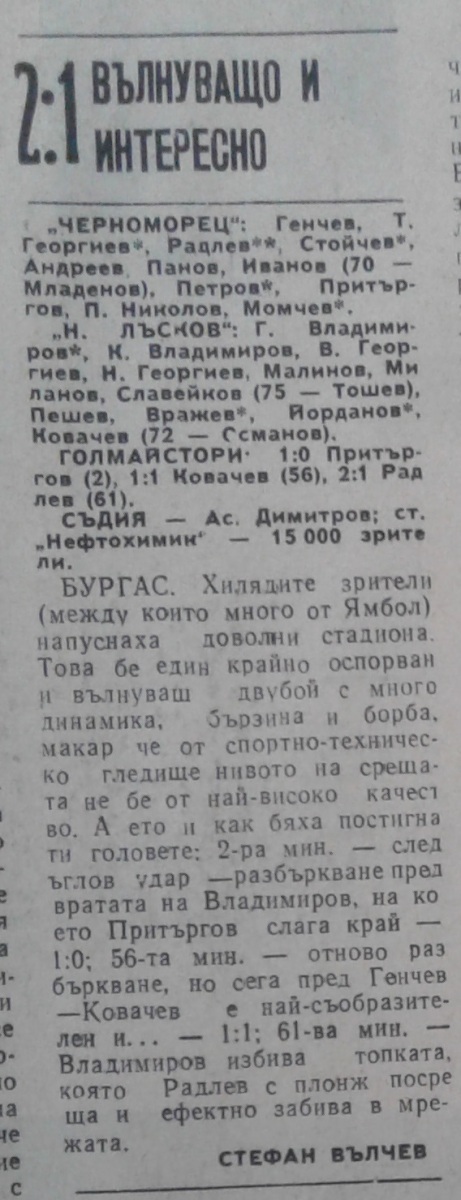 «Черноморец» Бургас - «Николай Лысков» Ямбол - 2:1