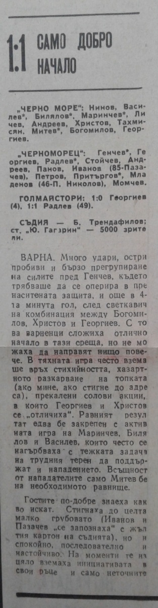«Черно море» Варна - «Черноморец» Бургас - 1:1