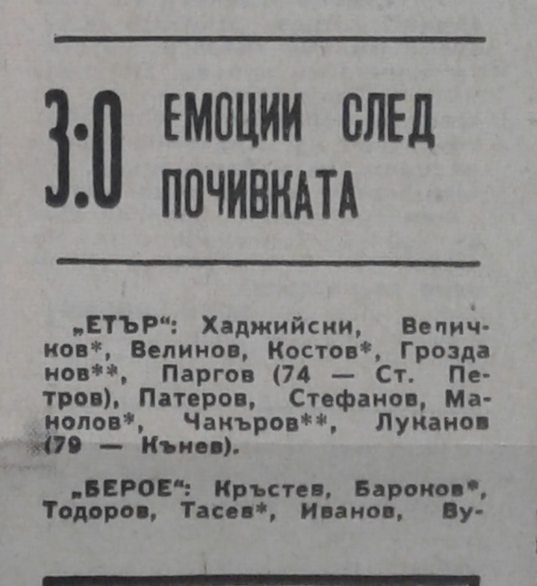 «Этыр» Велико-Тырново - «Берое» Стара-Загора - 3:0