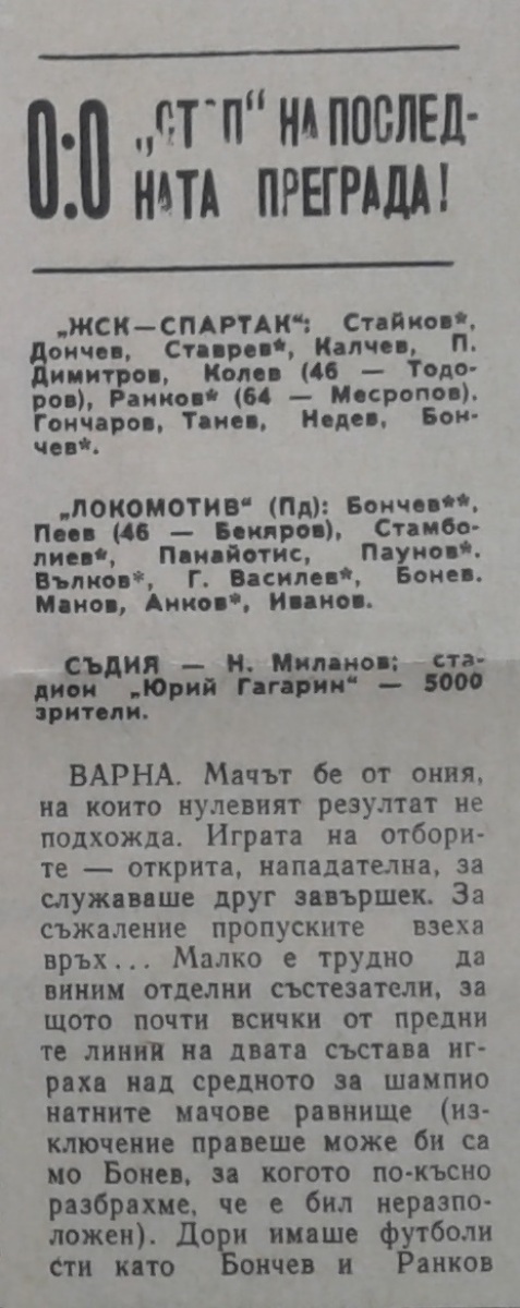 «ЖСК-Спартак» Варна - «Локомотив» Пловдив - 0:0