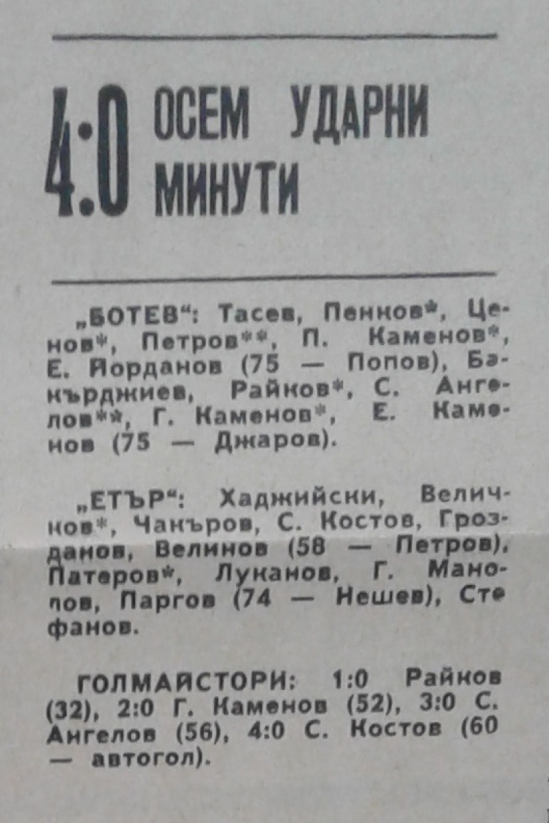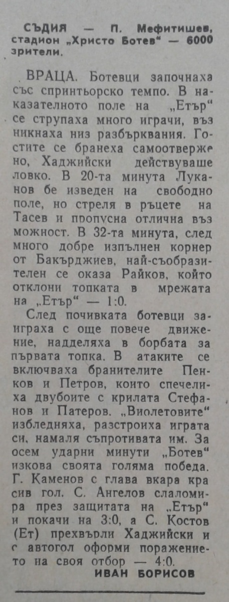 «Ботев» Враца - «Этыр» Велико-Тырново - 4:0