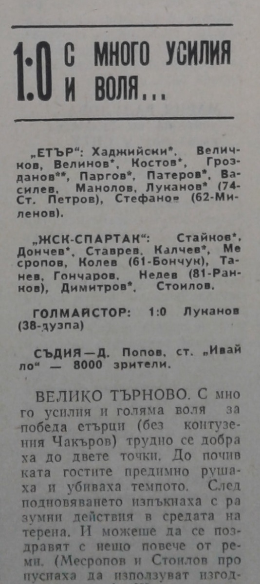 «Этыр» Велико-Тырново - «ЖСК-Спартак» Варна - 1:0