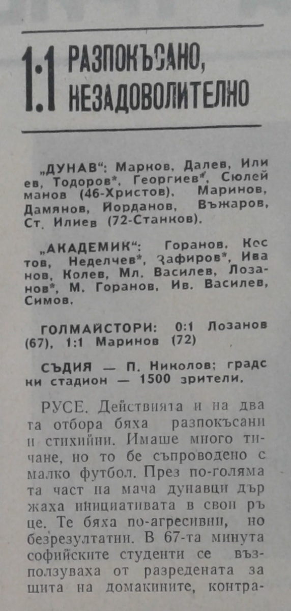 «Дунав» Русе - «Академик» София - 1:1
