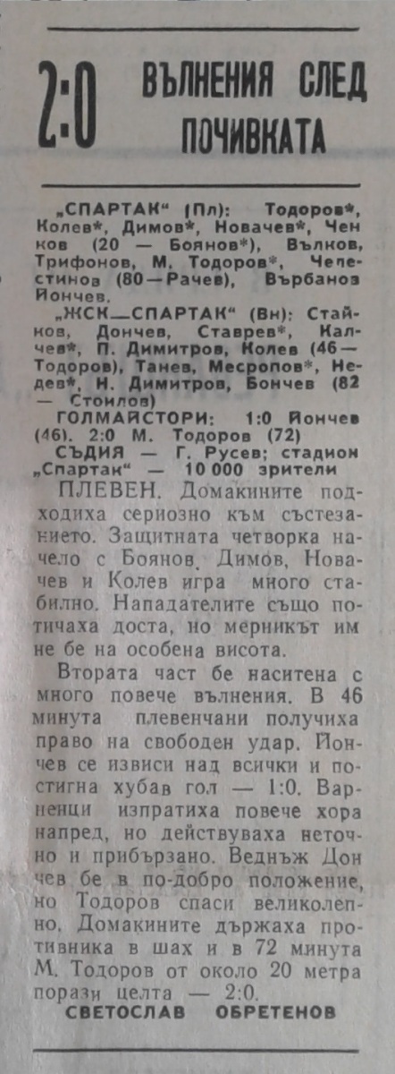 «Спартак» Плевен - «ЖСК-Спартак» Варна - 2:0