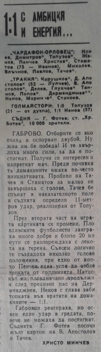 «Чардафон-Орловец» Габрово - «Тракия» Пловдив - 1:1