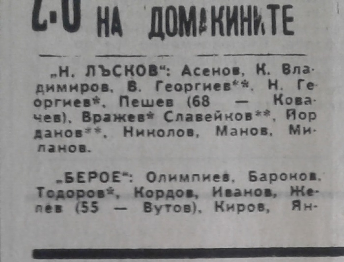 «Николай Лысков» Ямбол - «Берое» Стара-Загора - 2:0