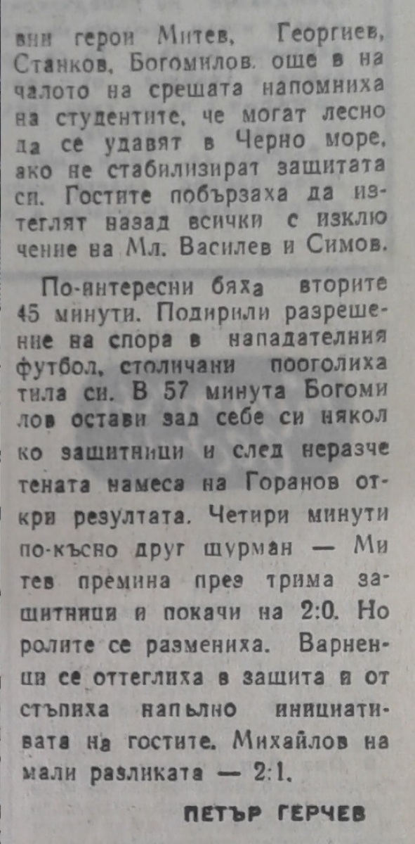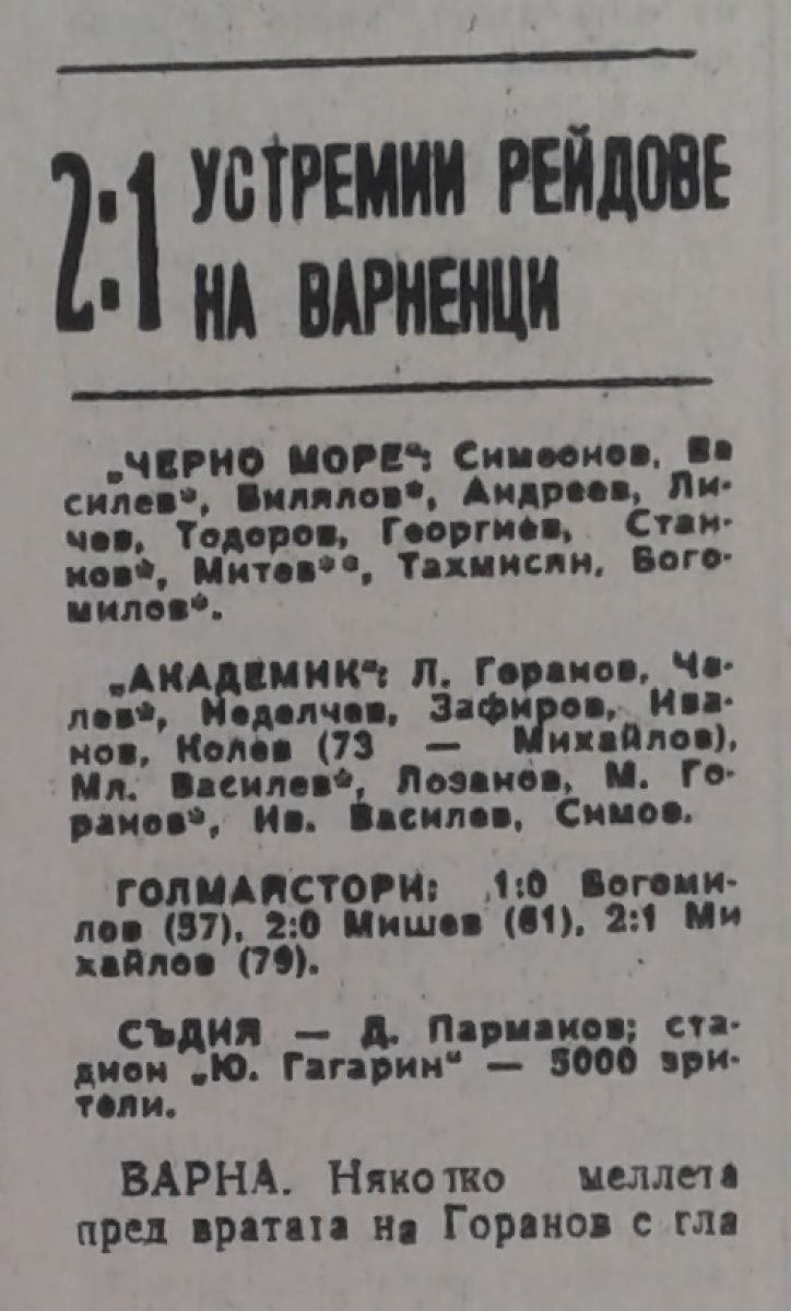 «Черно море» Варна - «Академик» София - 2:1