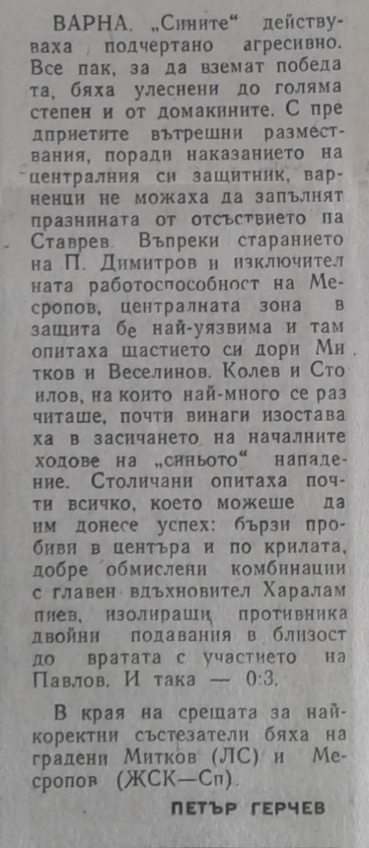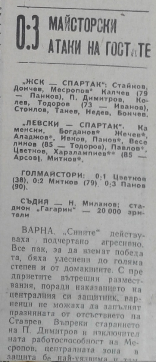 Кирил Ивков (Левски-Спартак) провёл свой 150-й матч в А РФГ. Петар Иванов (ЖСК-Спартак Варна) дебютировал в А РФГ (из юнош. команды).
