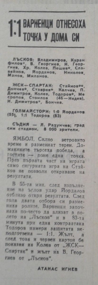 «Николай Лысков» Ямбол - «ЖСК-Спартак» Варна - 1:1