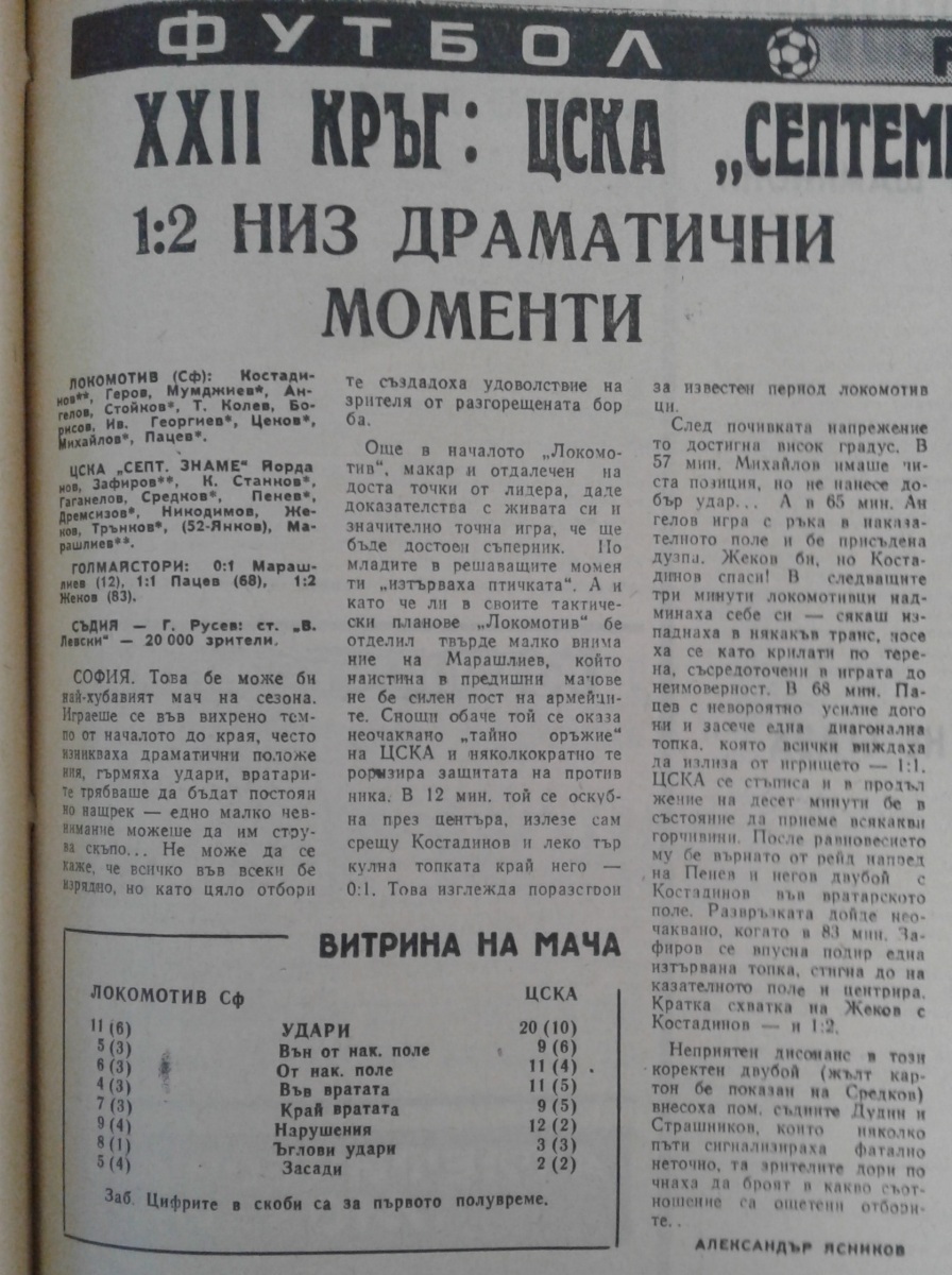 «Локомотив» София - «ЦСКА Септемврийско Знаме» София - 1:2