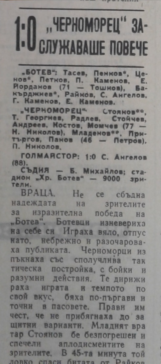 «Ботев» Враца - «Черноморец» Бургас - 1:0