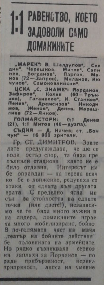 «Марек» Станке-Димитров - «ЦСКА Септемврийско Знаме» София - 1:1