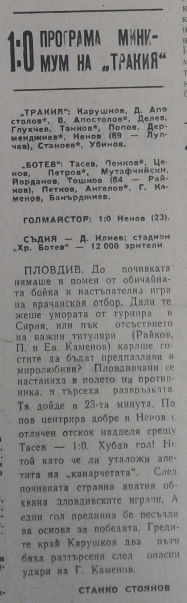 «Тракия» Пловдив - «Ботев» Враца - 1:0