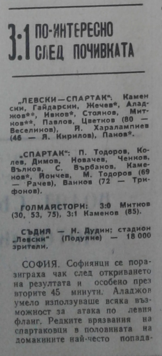 «Левски-Спартак» София - «Спартак» Плевен - 3:1