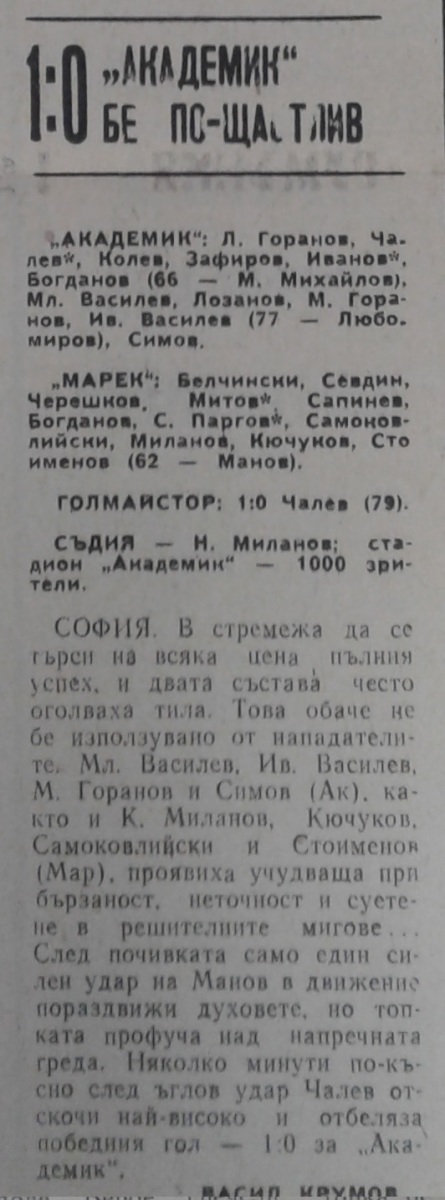 «Академик» София - «Марек» Станке-Димитров - 1:0