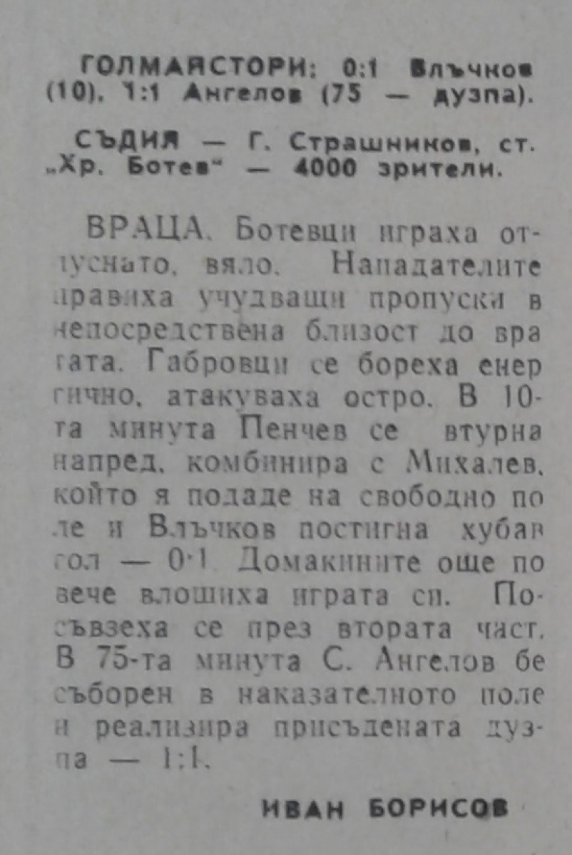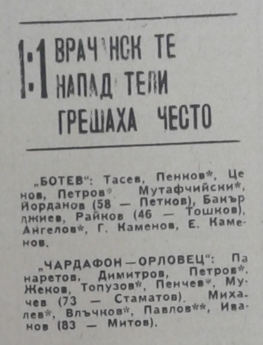 «Ботев» Враца - «Чардафон-Орловец» Габрово - 1:1