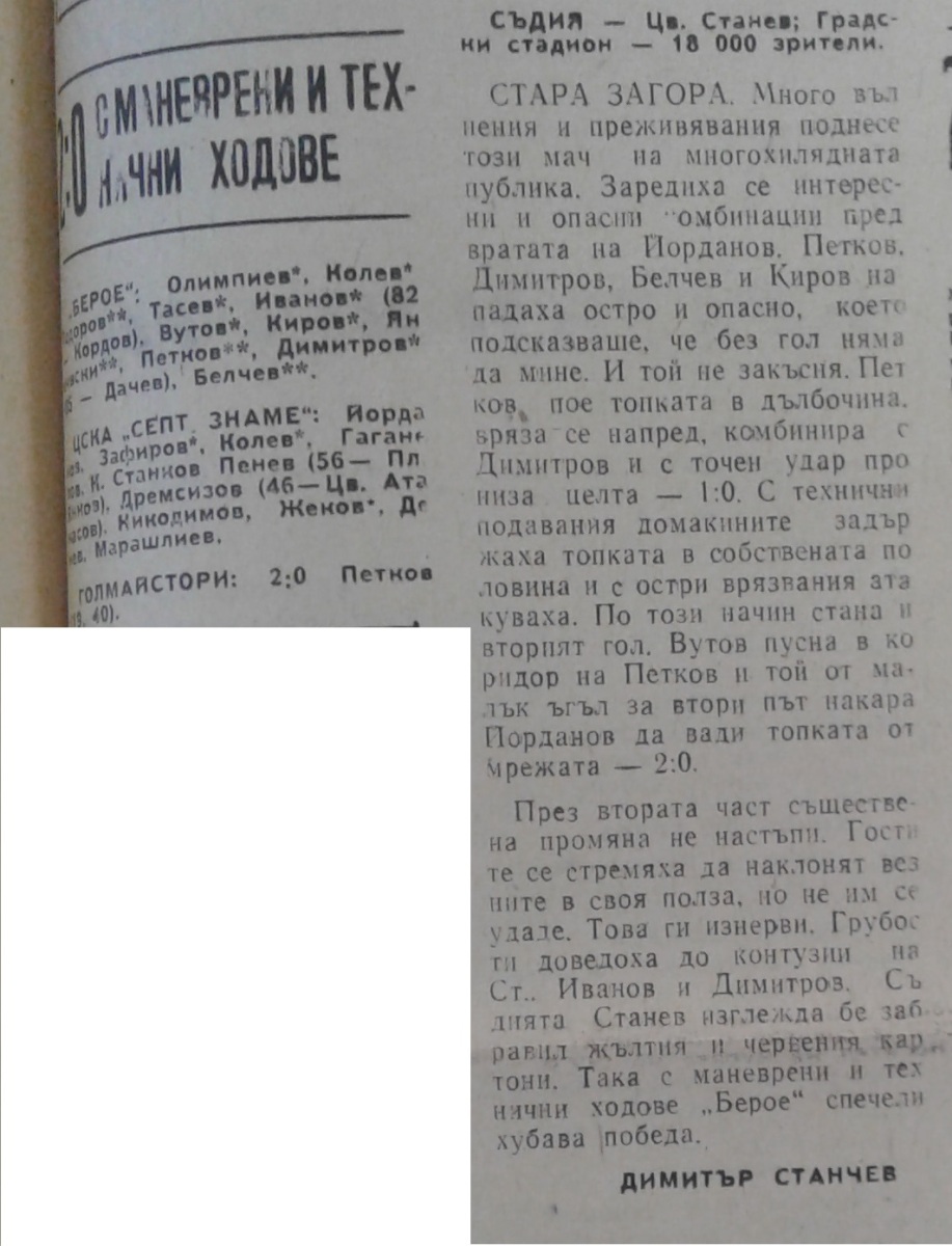 «Берое» Стара-Загора - «ЦСКА Септемврийско Знаме» София - 2:0