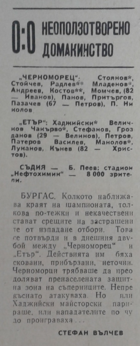 «Черноморец» Бургас - «Этыр» Велико-Тырново - 0:0