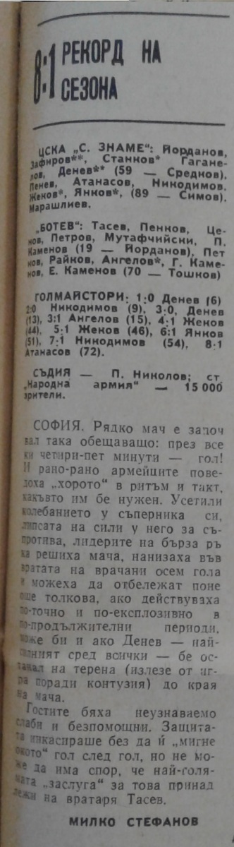 «ЦСКА Септемврийско Знаме» София - «Ботев» Враца - 8:1