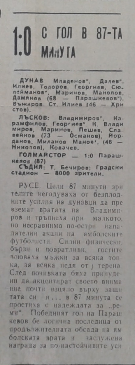 «Дунав» Русе - «Николай Лысков» Ямбол - 1:0