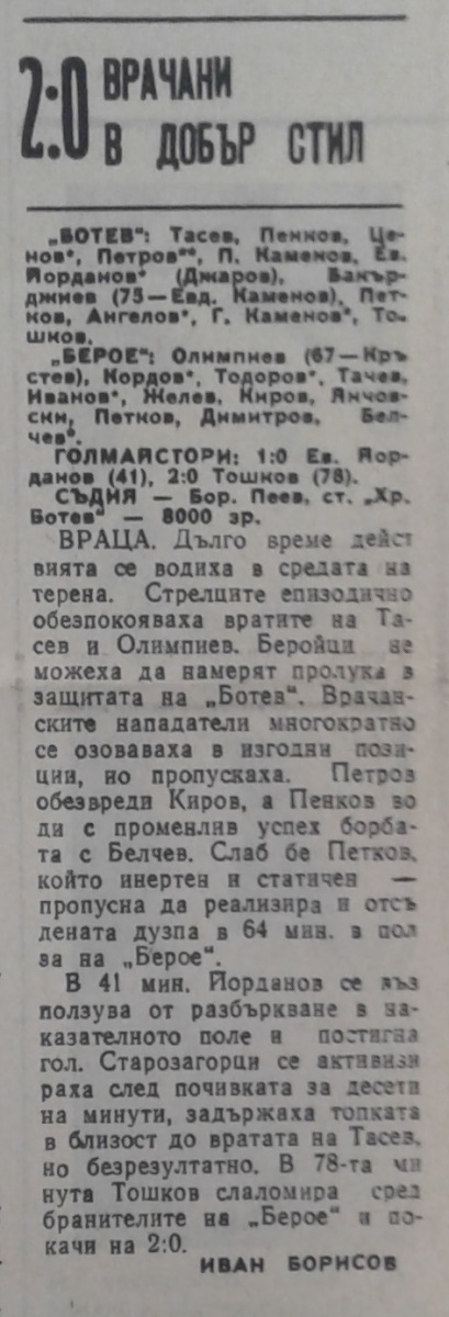 «Ботев» Враца - «Берое» Стара-Загора - 2:0