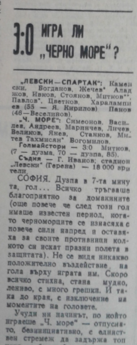 «Левски-Спартак» София - «Черно море» Варна - 3:0