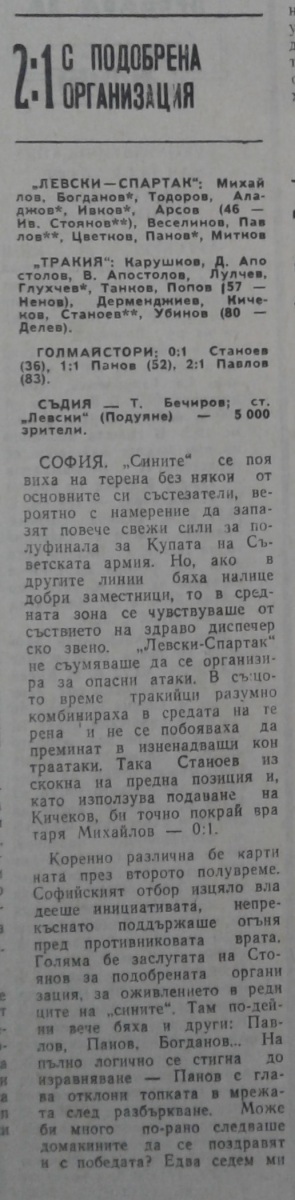 Георги Попов (Тракия) провёл свой 250-й матч в А РФГ. Стефан Павлов (Левски-Спартак) провёл свой 100-й матч в АРФГ.