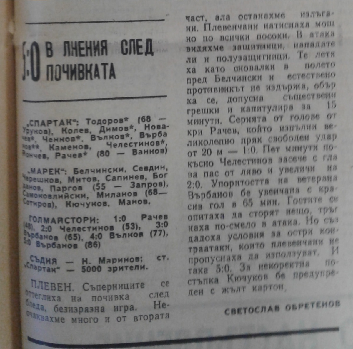 «Спартак» Плевен - «Марек» Станке-Димитров - 5:0
